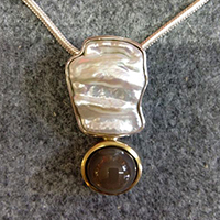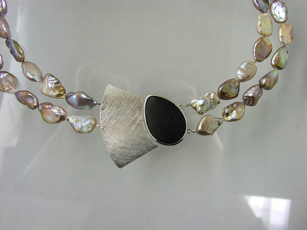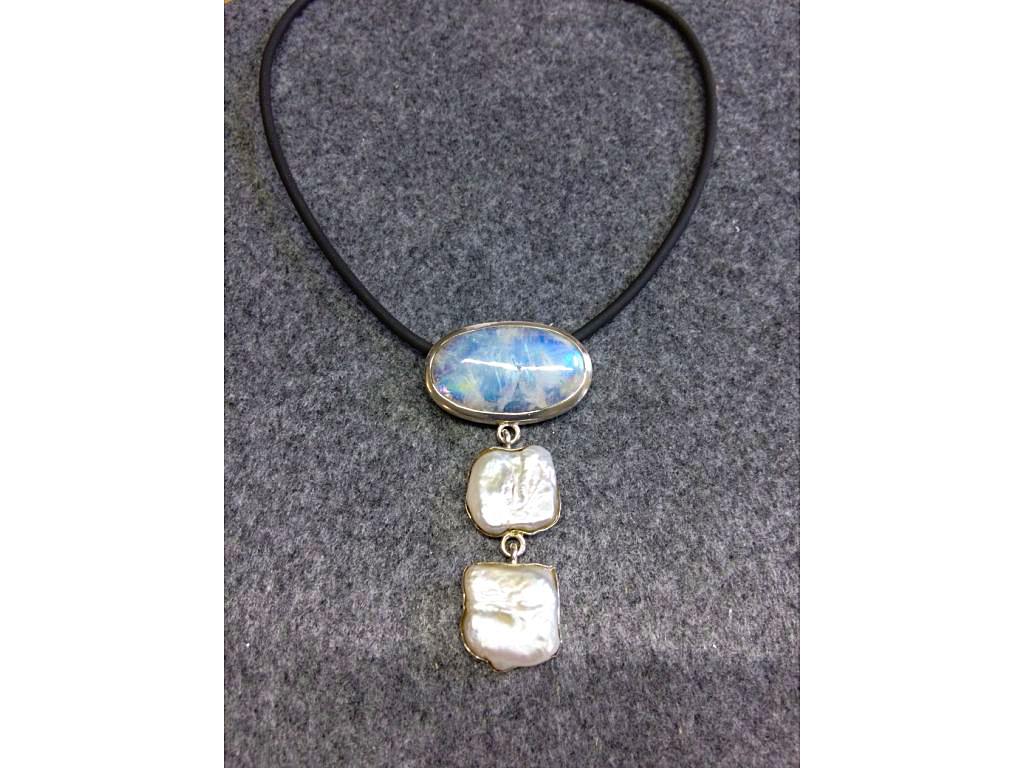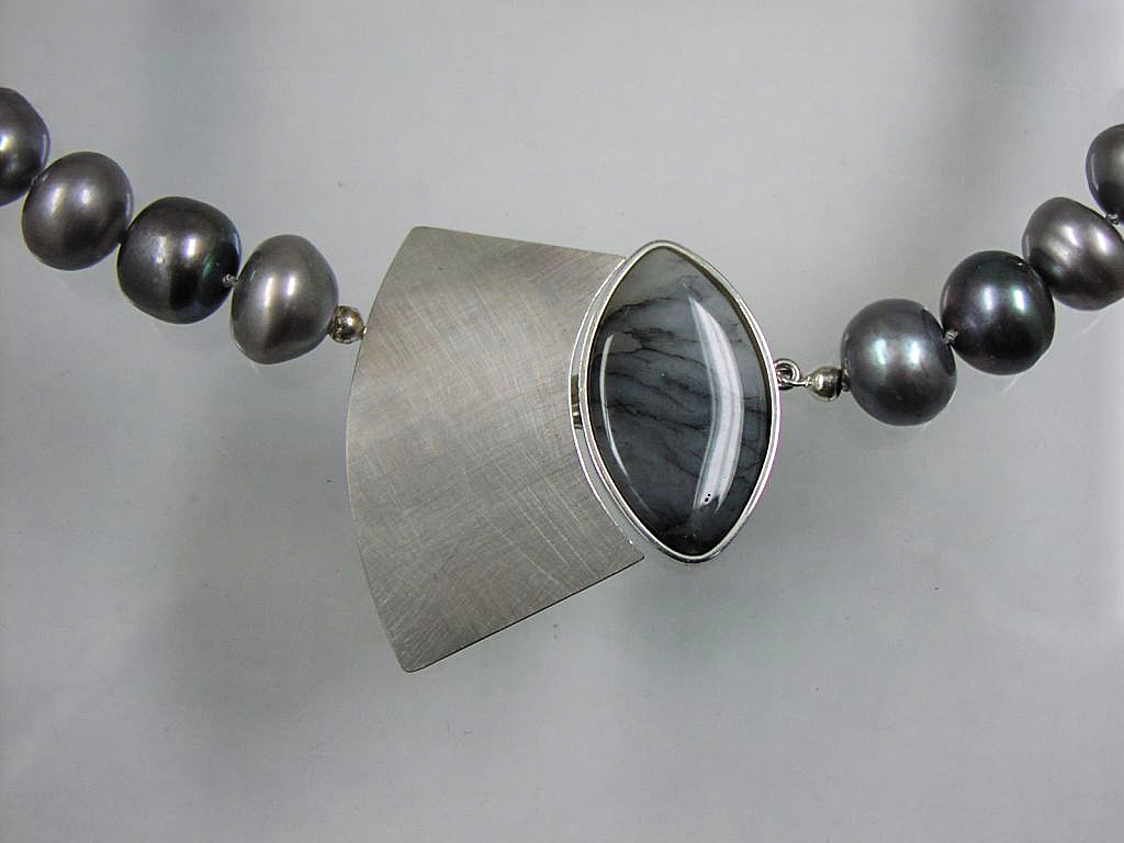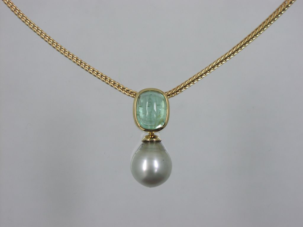 Hier sehen Sie eine Auswahl an Halsschmuck. Anhänger, Colliers, Silber, Gold, Perlen, Brillanten – kurz: Alles ist möglich.